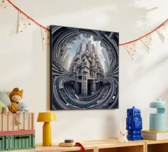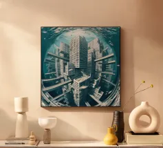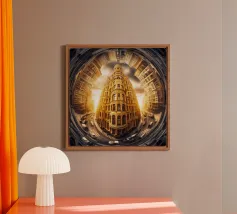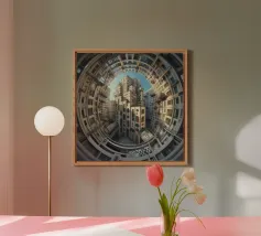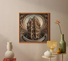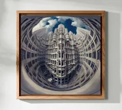 Sphere 063 - Surreal Circular Architecture With Statue alluminio dibond con Cornice Artbox