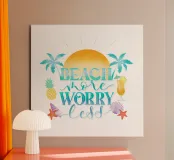 Spiaggiare di più. Worry Less. Lettering fresco con sensazione di spiaggia alluminio dibond