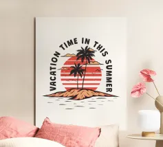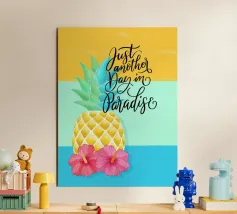 Siete pronti per una vacanza e avete voglia di sole, mare e spiaggia. Allora questo motivo con alba, palme, cocktail rinfrescanti, ananas fresco e conchiglie è proprio quello che fa per voi. Detto umoristico per l'estate. Concedetevi più spiaggia e preoccupatevi di meno.