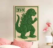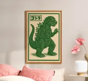 Scatenate il Re dei Mostri con questa esclusiva stampa artistica di Godzilla (Gojira)! Questa splendida illustrazione è realizzata in uno stile xilografico/linocut dettagliato e dinamico, che fonde la classica estetica Ukiyo-e con l'iconica cultura pop Kaiju. La stampa presenta la colossale creatura in un profondo verde foresta su uno sfondo beige e include il testo giapponese Katakana ゴジラ per un tocco autentico. Questo pezzo è perfetto per i fan e i collezionisti alla ricerca di una dichiarazione grafica e minimalista. Il file digitale di qualità superiore (7000x5000 pixel, 300 dpi) garantisce linee nitide e dettagliate e colori vivaci per un'immagine di grande impatto.