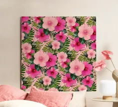 Un delizioso disegno acquerellato che combina succose fragole rosa con morbidi fiori di ibisco rosa su uno sfondo rosa chiaro. Questo dolce disegno tropicale fonde frutta fresca e fiori esotici per un'estetica femminile ed estiva. . Perfetto per gli amanti delle fragole, per gli appassionati di tropici, per i fan dell'estetica rosa e per tutti coloro che amano l'affascinante combinazione di dolci bacche e splendidi fiori tropicali dai toni morbidi e romantici.