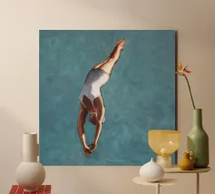 Subacqueo che esegue un'aggraziata discesa subacquea in un ambiente tranquillo alluminio dibond