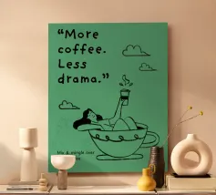 Benvenuti al Coffee Club, il luogo per tutti coloro la cui giornata inizia davvero con il primo sorso di caffè. Qui troverete disegni realizzati con amore e ispirati a tutto ciò che riguarda il caffè: tipografia moderna, vignette spiritose, illustrazioni minimaliste, motivi botanici dei chicchi e affermazioni intelligenti per tutti coloro che prendono il caffè un po' troppo sul serio - o abbastanza sul serio. Ogni opera è stata creata con cura, un tocco di umorismo e un occhio all'estetica calda e accogliente. Che sia audace e scuro come un espresso o morbido e liscio come un latte macchiato, ogni disegno porta con sé quella speciale miscela di comfort ed energia. Tutte le stampe sono prodotte in alta qualità in modo che le linee, le forme e le parole appaiano nitide, espressive e durature - perfette per cucine, uffici, angoli caffè o come regalo per i veri amanti del caffè. Coffee Club porta più di un'opera d'arte da parete - porta un sentimento: il momento della calma, della gioia e del "prima prendo un caffè". Un'arte che è edificante come un buon caffè.