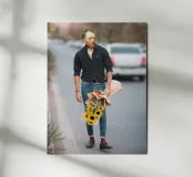 "In questo divertente pezzo, assistiamo a Van Gogh che tiene in mano un mazzo di girasoli in uno scenario insolito: è il suo primo appuntamento romantico! Con un tocco di ironia e comicità, questa parodia del grande maestro olandese offre un tocco intelligente e fresco. Utilizzando tecniche di collage digitale, viene creata un'immagine neo-pop che trae ispirazione dall'iconico autoritratto dell'artista e lo reimmagina in un nuovo contesto."