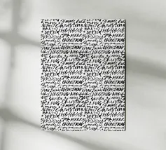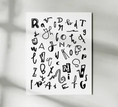 Questo motivo di caratteri speciali di tipografia digitale è un'opera d'arte di grande impatto visivo. L'opera d'arte presenta un audace e preciso motivo di caratteri speciali ripetuti. L'artista (kathrinmay) ha prestato attenzione a dettagli quali spaziatura, crenatura e layout.