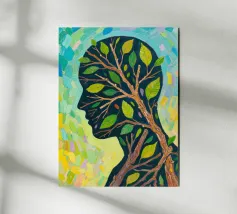 Umano trasparente con un giardino in miniatura con pittura fauvismo stile arte