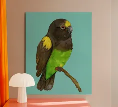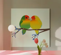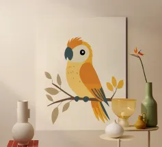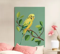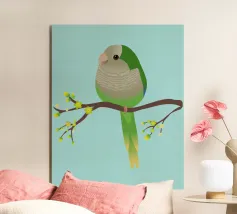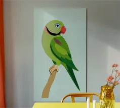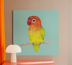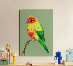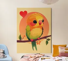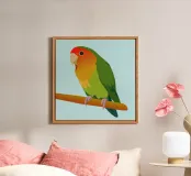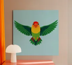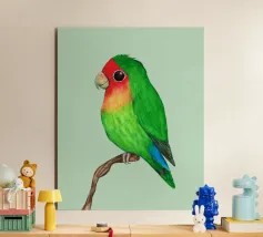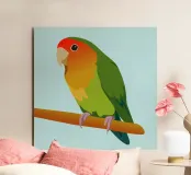 Illustrazione digitale di un simpatico inseparabile dalla faccia di pesca appollaiato su un bastone.