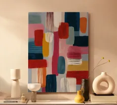 Blocchi fucsia, verde acqua e arancione si fondono in un ritmo vivido e architettonico. Una celebrazione del colore che sembra al tempo stesso artistica ed editoriale, pensata per i collezionisti moderni.