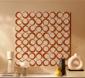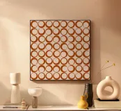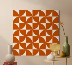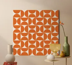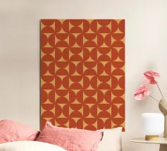 Questo motivo ad anelli retrò arancione bruciato trasmette un'energia calda e nostalgica, ispirata all'arredamento eclettico degli anni '60 e '70. Le sue curve geometriche fluide creano una dichiarazione audace ma accogliente, perfetta per stampe d'arte, tessuti e interni moderni e retrò.
