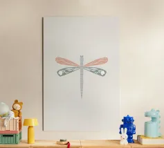 Questa allegra illustrazione di una libellula con l'arguto testo rosa "Sum Sum Sum" cattura la leggerezza e la giocosità della natura in modo minimalista.