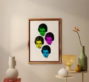 Un'illustrazione pop-art contemporanea con quattro ritratti disegnati a inchiostro, ciascuno immerso in una diversa tonalità vibrante. Faces in Color esplora l'emozione, l'identità e la ripetizione: un'eco moderna dell'individualità in un mondo di modelli e somiglianze.