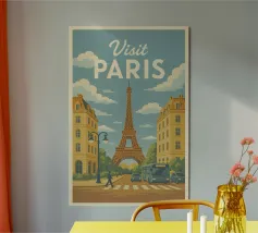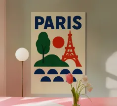 Bonjour, Parigi! Questo poster mostra la Torre Eiffel nell'iconico stile turistico retrò degli anni '20, con tipografia giapponese, linee chiare e colori intensi. Un classico per tutti gli amanti di Parigi, gli appassionati di design e gli amanti degli interni. Perfetto per le pareti di gallerie, salotti o decorazioni di caffè moderni. Parte della serie internazionale "World Icons - Retro Travel Series".