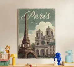 World Icons – Retro Travel Series - Eiffel View alluminio dibond