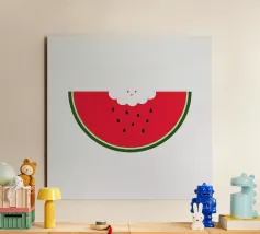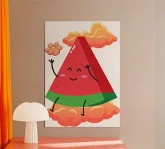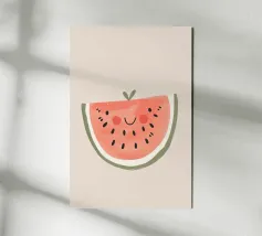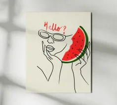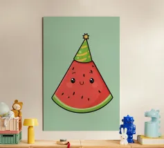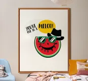 Il personaggio di un'anguria fresca indossa occhiali da sole e un cappello mentre pronuncia un gioco di parole con il testo "Sei un melone!" in bolle vocali.