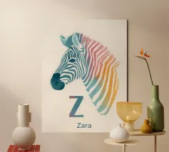 Una zebra creativa con strisce colorate nei colori dell'arcobaleno - un design giocoso pieno di gioia di vivere e di individualità.Zebra con strisce arcobaleno uniche come motivo principale. Armoniosa composizione di colori con un'espressione amichevole. Simbolo di diversità, creatività e orgoglio. Ideale per disegni infantili, moderni o legati alla cultura pop. Un vero e proprio eye-catcher dall'aspetto allegro.