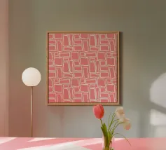 Quest'opera d'arte è un motivo a zig zag color pesca e corallo senza soluzione di continuità che unisce l'estetica moderna al fascino retrò. Le linee decise e il bellissimo corallo aggiungono un'atmosfera dinamica e fresca. Perfetto per chiunque voglia aggiungere un tocco di stile al proprio arredamento. Date un'occhiata e date un tocco di audace eleganza al vostro spazio!