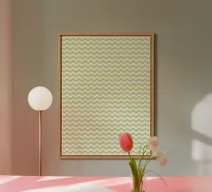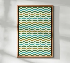 Questa opera d'arte è un motivo a zigzag verde senza soluzione di continuità che unisce l'estetica moderna al fascino retrò. Le linee decise e il verde vibrante aggiungono un'atmosfera dinamica e fresca. Perfetto per chiunque voglia aggiungere un tocco di stile al proprio arredamento. Date un'occhiata e date un tocco di audace eleganza al vostro spazio!