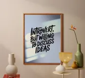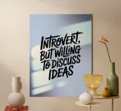 Un'opera d'arte tipografica per le menti tranquille. La frase "Introverso, ma disposto a discutere di idee" è scritta con un espressivo stile a pennello su un delicato sfondo di luci e ombre. Perfetto per interni minimalisti, spazi di lavoro accoglienti e per tutti coloro che preferiscono le conversazioni profonde al rumore. Un'immagine morbida con un messaggio potente.