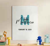 Aggiungete un tocco personale con questa elegante stampa personalizzata con iniziale e nome. Elegante e moderna, è il regalo perfetto per i nuovi nati, per i matrimoni o per l'arredamento della casa.