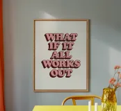 Trasformate il vostro spazio con questa accattivante stampa tipografica. Caratterizzata da scritte retrò 3D rosa e malva su un morbido sfondo beige, offre un messaggio elegante ed edificante. Il design di ispirazione vintage aggiunge un tocco di nostalgia e incoraggia una visione positiva. Perfetta per l'ufficio, il soggiorno o la camera da letto, questa stampa unisce il fascino retrò alla positività moderna. L'esclusiva palette di colori e l'effetto dimensionale creano un interesse visivo che la rende un pezzo unico. Che si tratti di un promemoria personale o di un regalo premuroso, quest'opera d'arte ispira ottimismo e illumina qualsiasi parete.