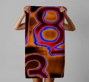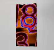 Questo intenso poster fonde estetica glitch, tipografia infuocata e una palette di colori vibranti. I numeri, distorti e aureolati in rosso, arancione, blu elettrico e nero profondo, sembrano fluttuare in uno spazio astratto e saturo di calore visivo.