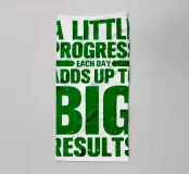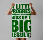 "Arte tipografica d'ispirazione con la frase 'A LITTLE PROGRESS EACH DAY ADDS UP TO BIG RESULTS' (Un piccolo progresso ogni giorno porta a grandi risultati) in grassetto verde, con caratteri rovinati su uno sfondo bianco pulito, che trasmette un messaggio di perseveranza e realizzazione!",