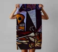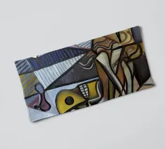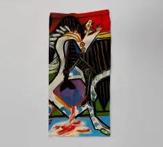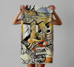 Questo dipinto astratto vibrante ed energico presenta un gioco dinamico di forme frammentate e linee audaci, con una ricca tavolozza di arancioni, gialli, viola e blu. La composizione suggerisce elementi decostruiti, forse figure o oggetti, in un movimento vorticoso ed energico, caratteristico delle influenze cubiste ed espressioniste astratte. I dettagli intricati e i colori contrastanti creano un'esperienza visiva accattivante e stimolante. Questo poster digitale di alta qualità (7000x5000 pixel, 300 dpi) cattura magnificamente l'energia grezza e il genio artistico dell'originale, ma