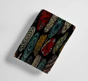 Un ricco motivo astratto con forme organiche e superfici strutturate in colori caldi come verde acqua, rosso ruggine, giallo oro, corallo, beige e blu su sfondo nero. Perfetto per gli amanti dell'arte astratta, gli appassionati di texture, i fan dei colori caldi e tutti coloro che apprezzano le forme organiche con dettagli artistici e la raffinatezza della terra.