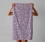 Motivo artistico astratto con sfondo lavanda e linee bianche stravaganti e labirintiche che ricordano un codice segreto. Questo disegno unico e creativo è perfetto per essere utilizzato in vari progetti grafici, tra cui sfondi di siti web, copertine di libri o disegni tessili, e piacerà a chiunque sia alla ricerca di motivi intricati e stimolanti.