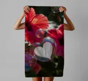 Cuore romantico con fiori di ibisco rossi - Questa vibrante opera d'arte presenta un cuore scintillante in una bolla trasparente, che fluttua tra fiori di ibisco rosso brillante in piena fioritura. Le foglie verdi e i petali rosso intenso creano un contrasto sorprendente, mentre la luce del sole si riflette magnificamente sulla bolla, aggiungendo un'atmosfera sognante e stravagante. Questo quadro è ideale per aggiungere un tocco di romanticismo e di eleganza ispirata alla natura a qualsiasi ambiente.