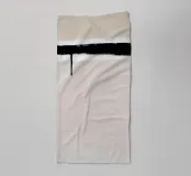 Un dipinto minimalista della linea dell'orizzonte, che mostra una rappresentazione astratta con una singola linea nera in alto e un'altra in basso, creando uno spazio negativo nei toni del beige e del bianco. L'opera incarna la semplicità attraverso le sue linee pulite e l'uso minimalista del colore, trasmettendo serenità su uno sfondo chiaro. Non è semplicemente arte, ma piuttosto un'espressione emotiva o una contemplazione visiva.