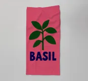 Un poster moderno di ispirazione pop art con il basilico come motivo grafico principale. Le foglie stilizzate di colore verde intenso spiccano sullo sfondo rosa acceso, completate dalla scritta "BASIL" in blu scuro. Questo design minimalista in stile Artezza gioca con i contrasti e i colori ed è perfetto come poster per la cucina, come decorazione per le piante o come elegante dichiarazione di erbe aromatiche per la vostra casa.