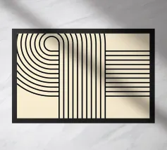 Questa stampa ispirata alla Bauhaus presenta un sorprendente motivo curvilineo nei classici colori bianco e nero, offrendo un design dinamico ma minimalista. Le forme geometriche e fluide conferiscono energia e raffinatezza a qualsiasi spazio, rendendolo perfetto per chi apprezza il modernismo e l'arte astratta. Questo pezzo cattura l'essenza dei principi Bauhaus con un tocco contemporaneo, ideale per aggiungere un tocco artistico ed elegante alla casa o all'ufficio.