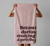 "La frase 'Perché tesoro, studiare è un privilegio' è presentata in un carattere serif in grassetto, marrone scuro, su uno sfondo rosa tenue",
