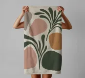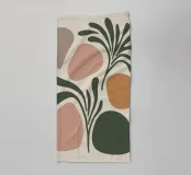 Una miscela armoniosa di natura e astrazione moderna, questo disegno presenta una foglia delicata completata da forme morbide e organiche in una tavolozza di colori pastello. Perfetto per aggiungere un tocco di tranquillità ed eleganza a qualsiasi spazio, questo pezzo di ispirazione boho incarna semplicità ed equilibrio.