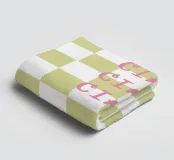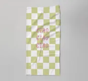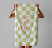 scritta ciao ciao ciao su motivo a quadri color pistacchio.