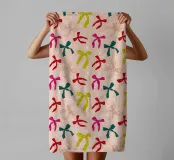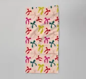 Un motivo giocoso di fiocchi colorati in rosso, rosa, verde acqua, verde lime e pesca, sparsi su un morbido sfondo color pesca con accenti di stelle bianche. Questo disegno allegro e festoso dona un fascino stravagante, perfetto per aggiungere un tocco femminile e gioioso al vostro spazio. Ideale per confezioni regalo, decorazioni ispirate alla moda o per chiunque ami un motivo audace ma delicato. Creato da showmemars