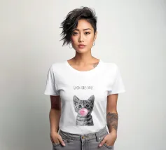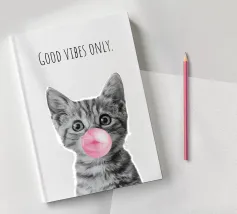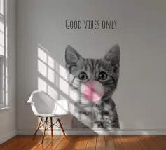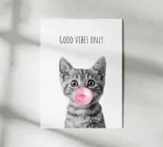 Questo gatto ha semplicemente tutto: fresco, elegante e con un tocco di coolness! Con la sua bolla di sapone rosa e il suo sguardo innocente, diffonde puro buonumore ed è il motivo perfetto per chiunque ami l'energia positiva e l'umorismo. Il design moderno e minimalista combina una sottile illustrazione in bianco e nero con un fresco accento rosa; semplice ma espressivo. Un must per i fan dei gatti, per gli amanti del design e per chiunque voglia farsi notare: casual, moderno e con un pizzico di umorismo.