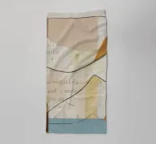 Quest'opera d'arte raffigura una composizione astratta con linee e forme curve, resa con colori tenui come il beige, il marrone e il blu. La composizione è aggraziata e fluida, evocando un senso di movimento ed eleganza.