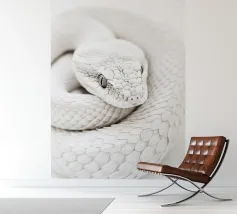 L'elegante ritratto di un serpente bianco in stile boho minimalista mostra l'affascinante bellezza dei rettili in bianco e nero. Ideale per gli amanti dell'arte animale!