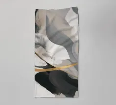Un'opera d'arte astratta dinamica dominata da ampie pennellate di grigi e bianchi, che creano un potente movimento vorticoso. La tavolozza monocromatica enfatizza la texture e il flusso energetico della composizione.
