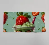 Un rinfrescante frullato verde menta con fragole fresche, servito in un elegante bicchiere, che crea una deliziosa e vivace delizia estiva.