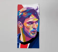 Lionel Messi in stile WPAP è un ritratto sorprendente e colorato del leggendario calciatore, creato utilizzando forme geometriche nitide e toni vivaci. Questo pezzo pop art cattura i tratti iconici e il carisma pacato di Messi, celebrando la sua grandezza attraverso l'audace linguaggio visivo di WPAP (Wedha's Pop Art Portrait).