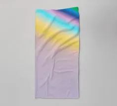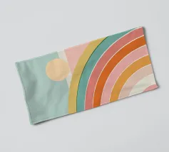 Questa delicata illustrazione mostra un arcobaleno in colori pastello con morbide sfumature di colore dall'azzurro al rosa, al giallo pastello e al verde chiaro. Le linee geometriche e le strisce strutturate danno un tocco moderno all'opera grafica e riflettono la natura. Un gioco armonioso di colori che irradia calma e gioia.