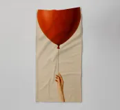 Un primo piano di una mano che stringe delicatamente il cordoncino di un grande palloncino color terracotta opaco, a forma di cuore. La composizione semplice e i toni morbidi e caldi creano un'immagine intima e un po' tenera, che si concentra sul legame tra la mano e il palloncino simbolico.