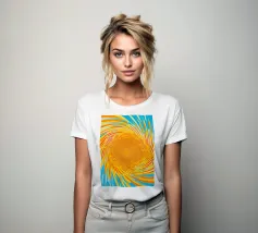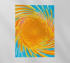 Un ipnotico capolavoro di op art: la radiosa spirale gialla del sole vortica dinamicamente sul blu turchese brillante - una perfetta fusione di sole, cielo e mare. Le linee precise e ritmiche ricordano Vasarely e Bridget Riley, mentre l'intensa palette di colori rivela influenze pop art. L'illusione ottica crea un affascinante effetto di profondità e attira magicamente lo spettatore al centro. Questa energica opera d'arte conferisce a qualsiasi ambiente un'atmosfera positiva, ottimista ed estiva e rimane a lungo nella memoria.