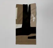 Forme astratte nei toni del marrone e del nero si scontrano e si sovrappongono per creare un senso di profondità e di intrigo. Le diverse tonalità suggeriscono un approccio minimalista, mentre le forme stilizzate invitano all'interpretazione e alla contemplazione individuale.