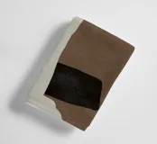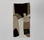 Forme astratte in varie tonalitร  di marrone e nero sono sovrapposte a uno sfondo color crema, creando una composizione moderna e minimalista. Le forme appaiono piatte e con bordi morbidi, suggerendo una certa fluiditร  e continuitร  nell'opera.