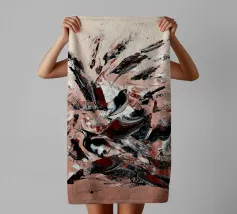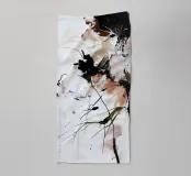 Un'energica composizione astratta guidata da gesti istintivi e movimenti spontanei. Audaci pennellate nere tagliano i morbidi strati di bianco, beige e toni tenui del blush, mentre schizzi e gocce introducono un ritmo crudo ed emotivo. Il contrasto tra il movimento fluido e le texture consolidate crea un senso di tensione e libertà, rendendo l'opera ideale per stampe d'arte di grande formato, interni contemporanei, gallerie moderne o usi editoriali.