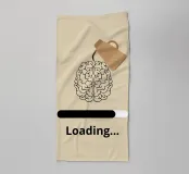 Un cervello viene raffigurato mentre viene riempito di caffè da un bricco, accompagnato da una barra di caricamento sottostante. L'illustrazione suggerisce con umorismo il bisogno di caffè della mente per funzionare correttamente.